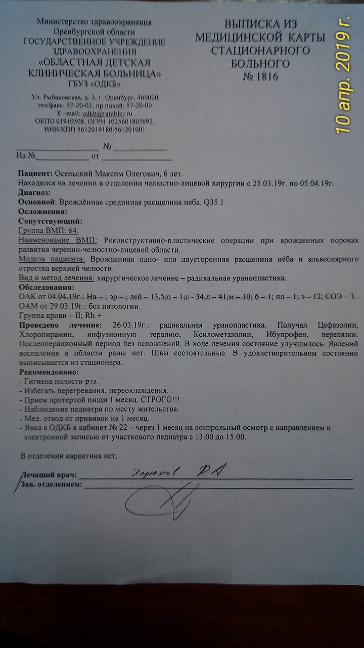 В этот теплый и солнечный весенний день хочется сказать спасибо Ильнару А., благодаря которому многодетная семья смогла поехать в г. Оренбург на операцию с сыном Максимом (6 лет) с диагнозом расщелина мягкого неба, и слава богу операция прошла благополучно, ребенок с отцом уже вернулись домой. Сейчас идет процесс восстановления, а через месяц снова в Оренбург на осмотр к врачу. Мы не объявляли сбор для этой семья у нас в группе, просто зашел разговор о семье с Ильнаром, и он просто дал денег на дорогу, не говоря лишних слов, просто спросил: "Сколько нужно?". Наш отчет о потраченной сумме семьи на дорогу в больницу г. Оренбурга. Для тех у кого возникают вопросы: почему оплата гостиницы, почему билеты на поезд до Бузулука, а с Бузулука до Бугуруслана на автобусе,- отвечаем: ребенка на пути в больницу в г.Оренбург сильно укачивало и рвало когда они с папой ехали на автобусе, поэтому после операции было принято решение по рекомендации врача ехать на поезде хотя бы до Бузулука, а до дома уже на автобусе; почему оплата гостиницы - в больнице нужно было быть рано утром в 9 часов, пришлось ехать в воскресенье, а родственников нет в Оренбурге, пришлось остановиться в гостинице. И очень хотелось бы всех вас попросить, все что мы делаем, мы делаем не для того, чтобы просто собрать деньги и отдать семье, мы связываемся и контролируем все что у них происходит, координируем в ситуациях когда они просто не запланированы, а нужно принять решение и помочь сию минуту, особенно когда семья уже завтра выписывается, а нужно успеть забрать выписку самому родителю, потому что её никому не отдают, приобрести билеты на тот рейс и время, чтобы можно было успеть уехать домой и не остаться на вокзале. Давайте будем добрее и уважительно относиться к окружающим, и начнем хотя бы немного доверять тем, кто хочет просто помогать